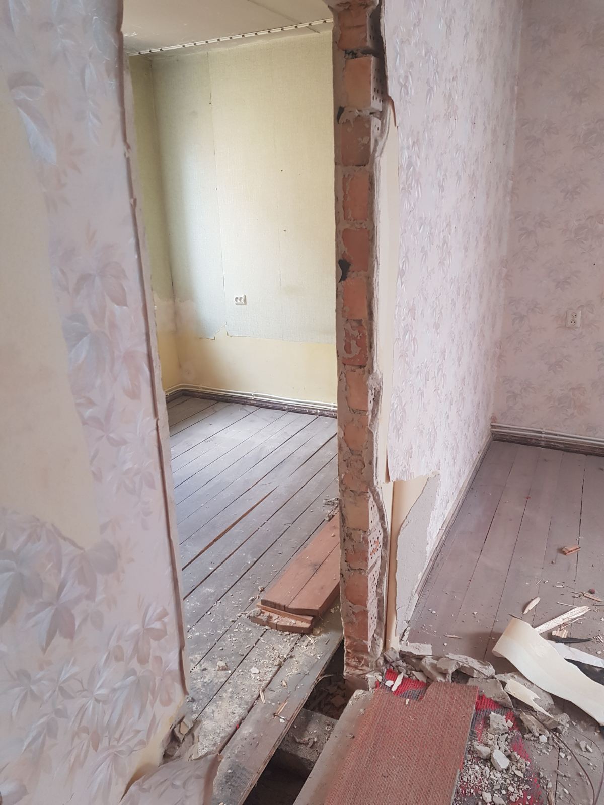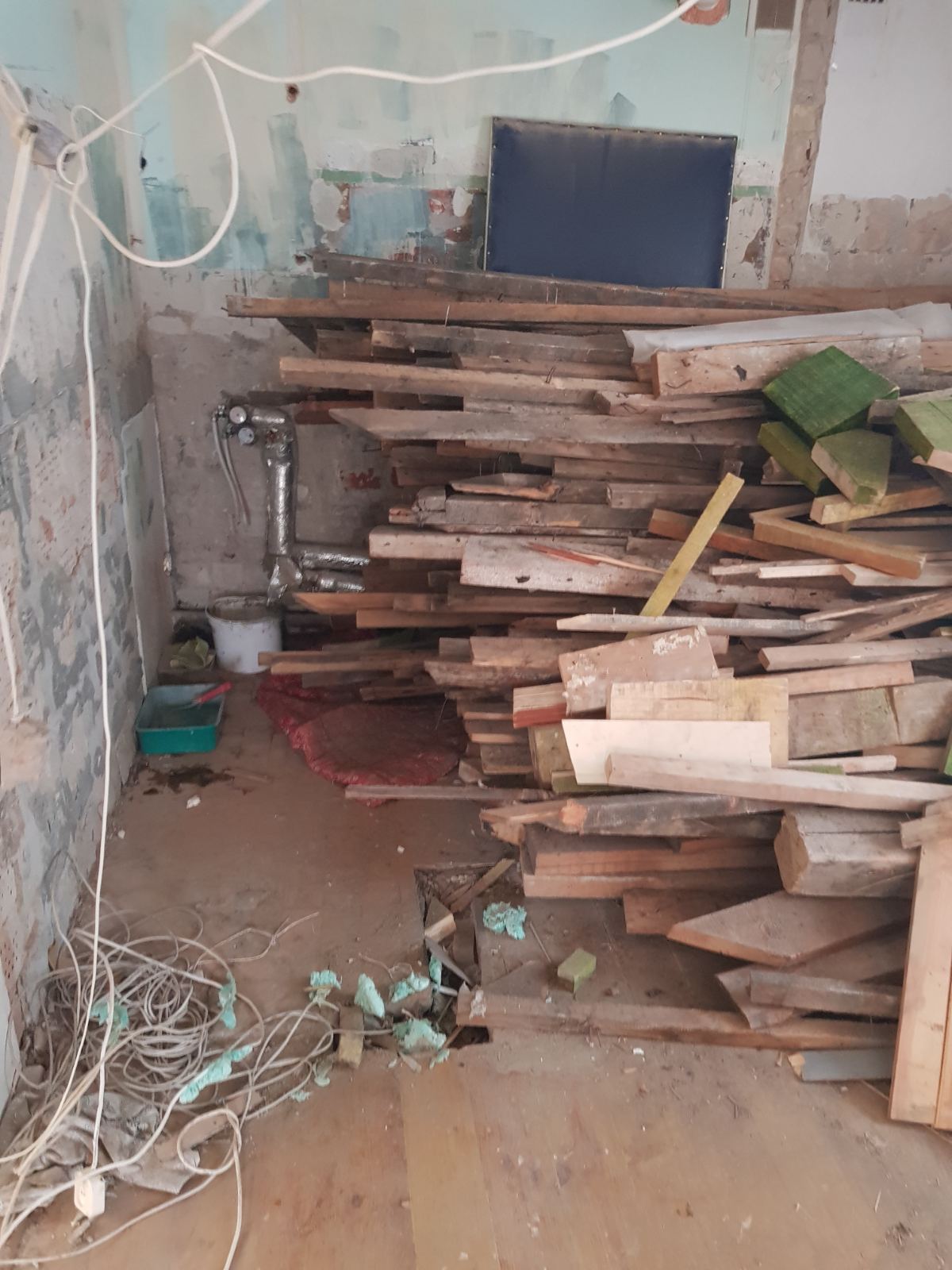 - Medieną: Medienos likučiai, medinės grindys, durys, langų rėmai.