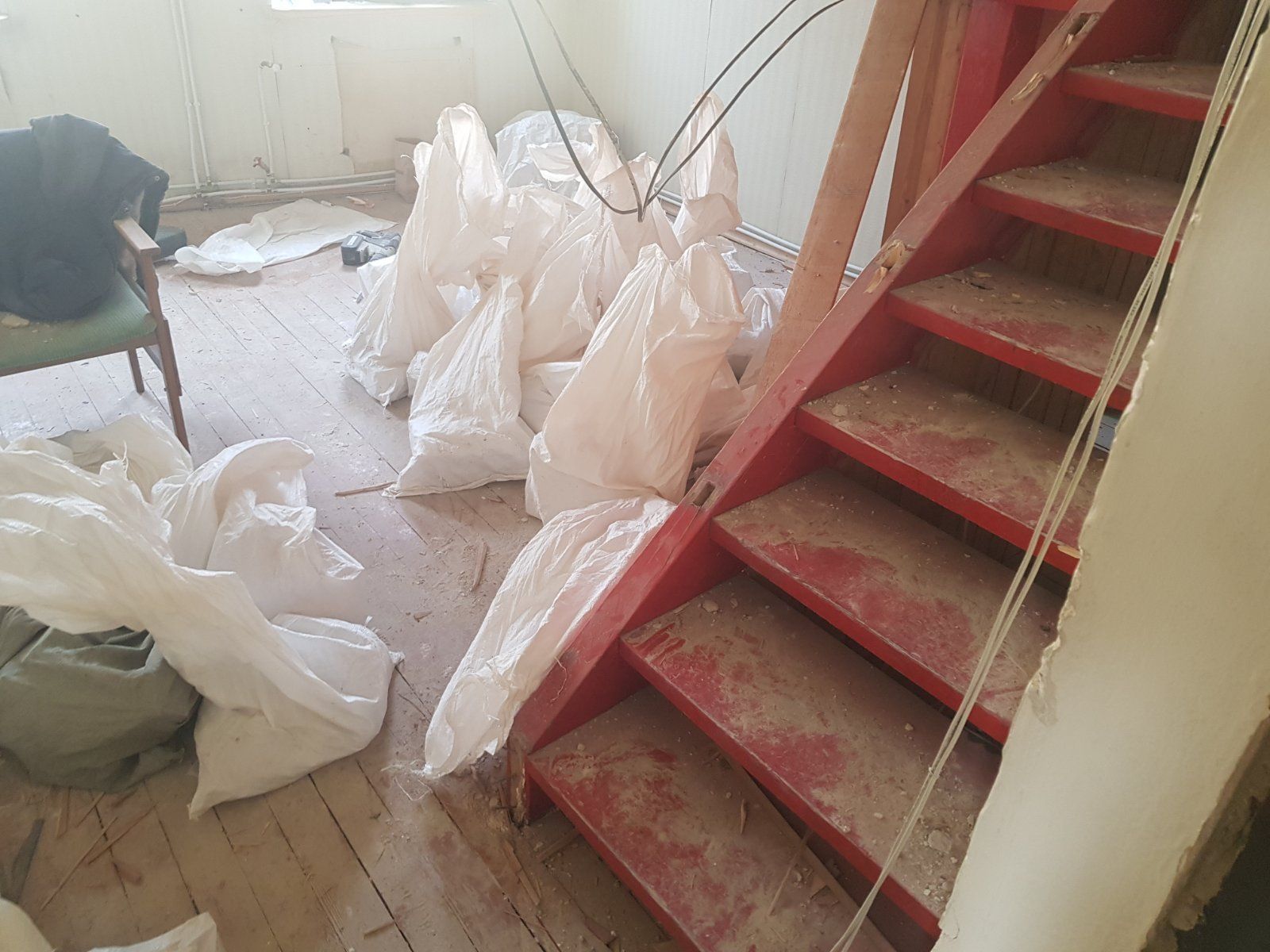 - Gipso kartonas: Gipso kartono plokštės, sienų ir lubų apdailos likučiai.